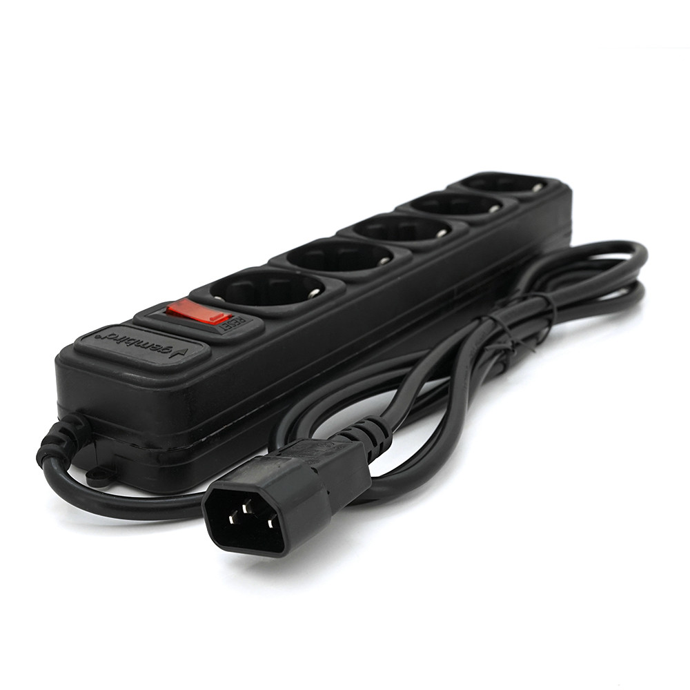 Мережевий подовжувач Gembird UPS SPG5-X-6B, 220 В 10 А, 5 розеток, 1.8 м, Black, Q40